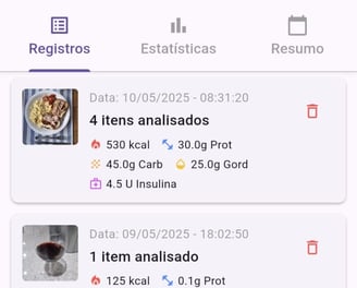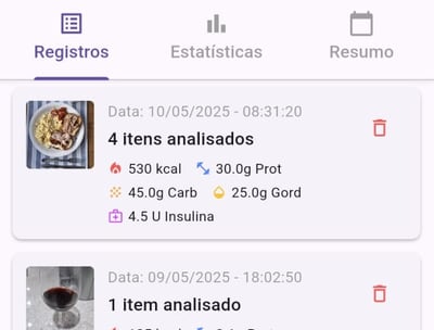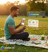 Monitore sua alimentação e insulina de forma prática e visual com Carbo AI.